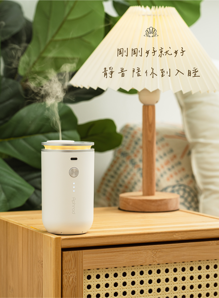 Aphrod 超音波香氛機與天然精油,靜音設計、擴香迅速、持久留香。